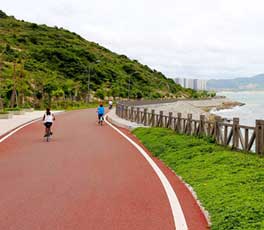 海边彩色混凝土道路